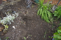 The first sign that mum is going into labour is when she starts to build a nest. Elsa chose to build hersin my flower bed....Don't panic! We are just reorganising the garden and this is an area where all the soil has to be dug out. I actually used the loosened soil to fill me hanging baskets. Much to Elsa's dislike. I was not quick enough to catch it on camera but Elsa kept putting teddies inside the whole. I wonder if she was checking it for size?