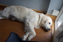 Another sign that labour is imminent is when mum refuses her food. Elsa refused her food tonight; Thursday 9th June. Instead of waiting with the other dogs for her food to be made she went and laid in the hall looking uncomfortable. I tried to coax her with a couple of her favourite titbits but to no availe. Sarah wants ot be here for the birth so I rang her to say,'I think we are on'. So once Lia was tooked up in bed she came over prepared for a long night.
