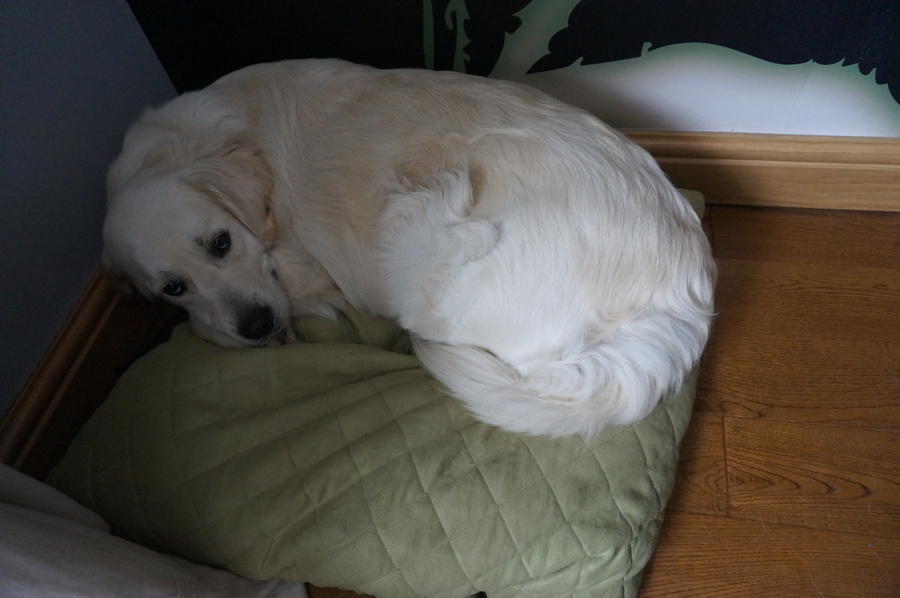 On Friday Elsa was uncompfy all day, she spent much of the time snuggled up on the small dog bed in our room. I left her to it checking on her regularly, it was obvious that she wanted to be away from the other dogs. By 5pm I rang Sarah and suggested that she have another night at mine if she didn't want to miss the birth.